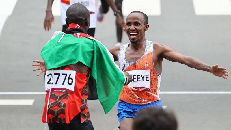 Op de laatste dag van de Olympische Spelen was er voor Nederland een enorme verrassing. Na nog 2x brons bij het baanwielrennen ( Harry Lavreijsen op de Keirin, brons na eerder al 2 keer goud EN de 38-jarige Kirstin Wild bij het Omnium, veroverde Abdi Nageeye achter de gedoodverfde favoriet , de Keniaan Eliud Kipchoge, het zilver. De eerste zilveren medaille op dit doodzware atletiekonderdeel ( ruim 42 kilometer hardlopen) sinds Gerard Nijboer in 1980. Nageeye was op 6-jarige leeftijd van Somalie naar Nederland gevlucht. Hij sleepte zijn trainingsmaatje, de Belg Bashir, mee naar het brons. Linksonder de omhelzing met de winnaar van het goud, rechtsonder het slot van de race. Rechtsonder de sluitingsceremonie van de Spelen.